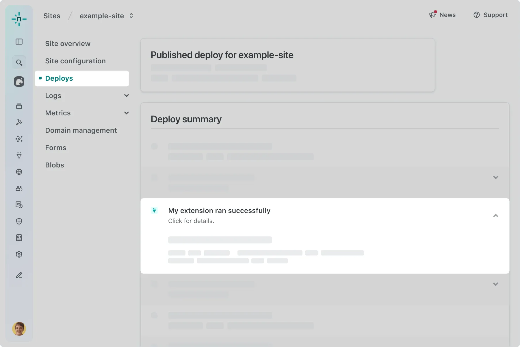 Section titled “Next steps”Now that you’ve created an extension, reviewed it in the Netlify UI, and added a new surface, you can create rich interactions by creating an endpoint and calling it from the UI.