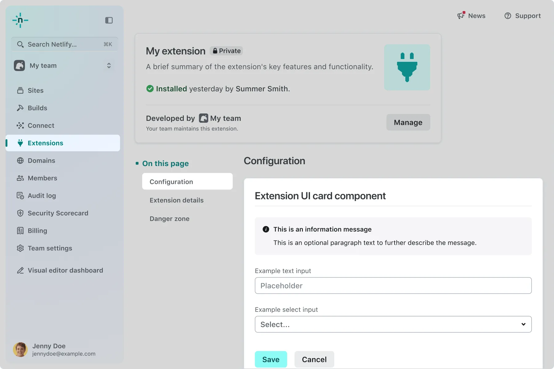 - Location in the Netlify UI: Extensions > [your extension’s details page] > Configuration